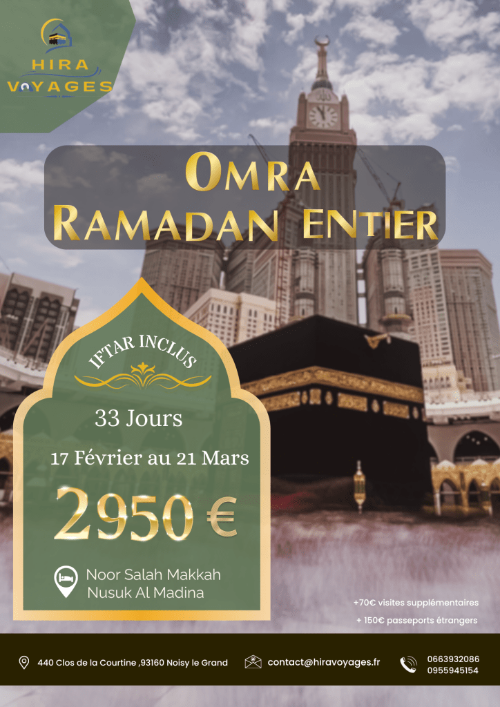 Nous serons alors honorés de partager ce voyage en terres saintes avec vous, en vous guidant à travers les étapes de votre pèlerinage à La Mecque et à Médine.